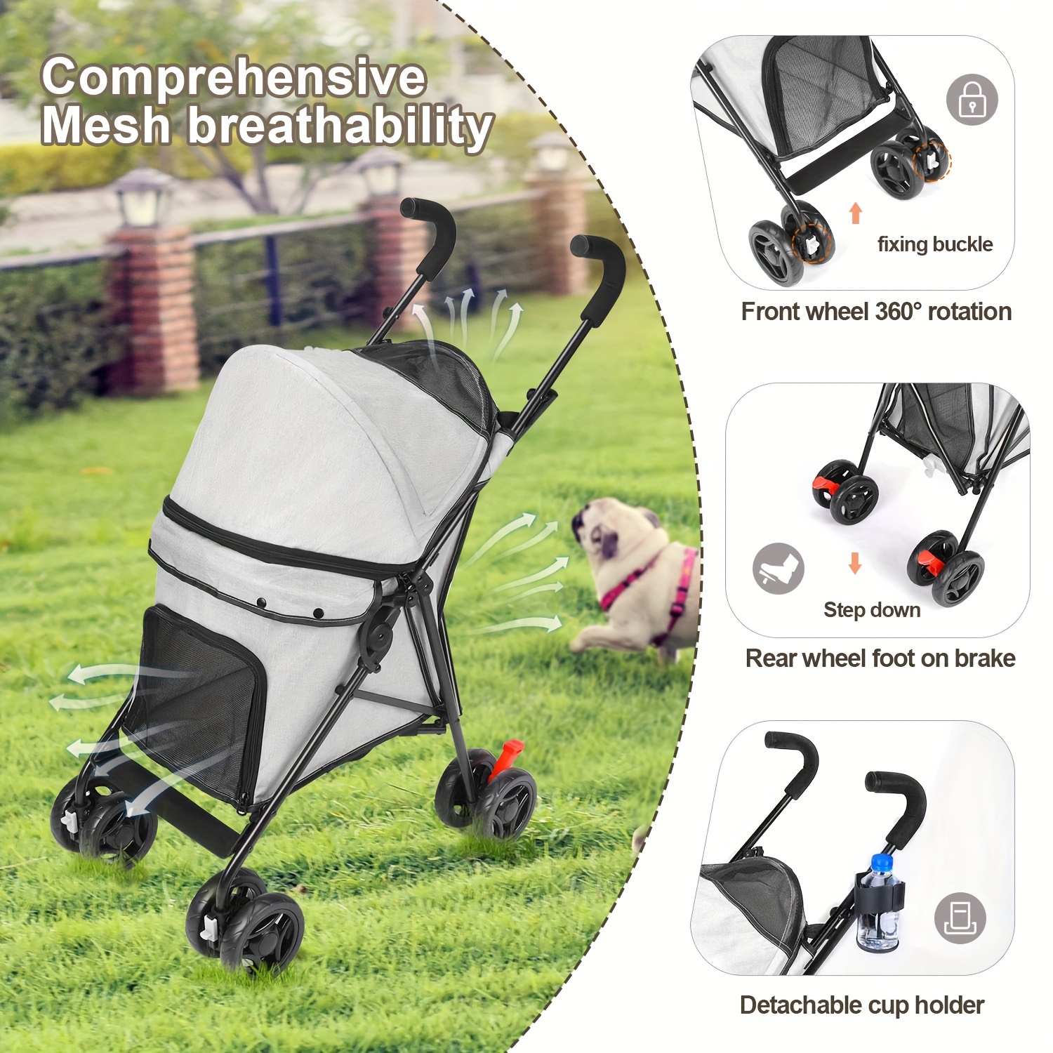 Troller dog Passeggino maneggevole impermeabile capienza fino a 15 kg